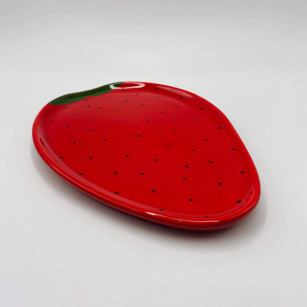Feito com cerâmica de alta qualidade, esta bandeja é resistente e durável, perfeito para uso diário. Seu design em forma de Morango além de trazer um toque refrescante e divertido à sua mesa, traz também, um toque de verão durante todo o ano.