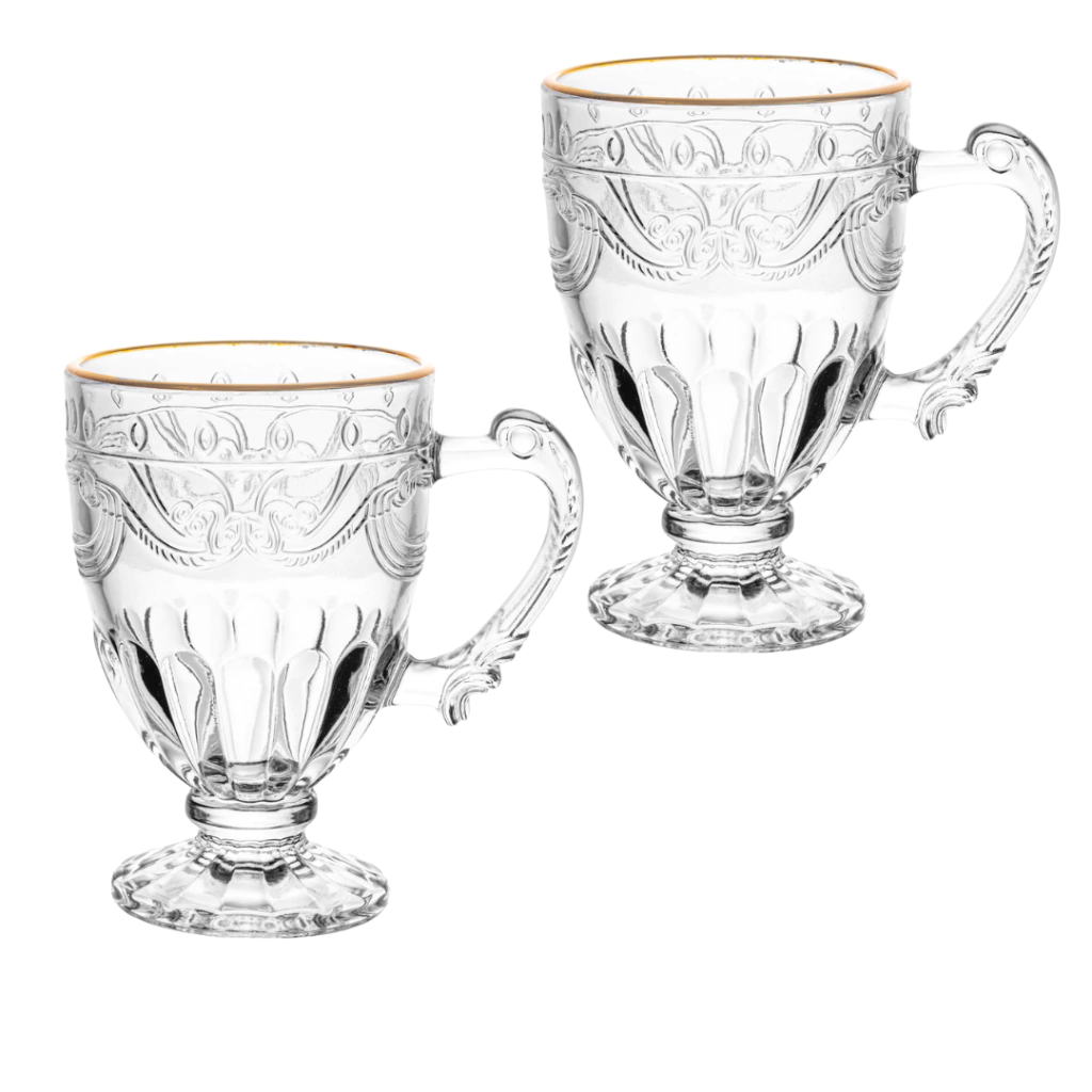 Feitas de Cristal com uma elegante borda dourada, essas canecas vão trazer um toque de sofisticação para a sua rotina de bebidas.