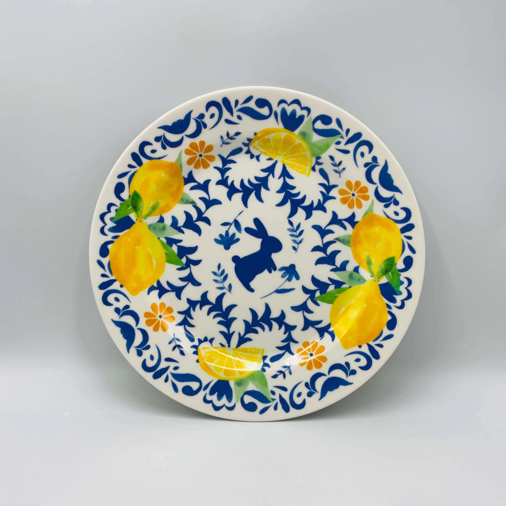 Design encantador: estampas exclusivas e tons vibrantes, com coelho limões sicilianos que trazem um toque festivo à sua mesa.