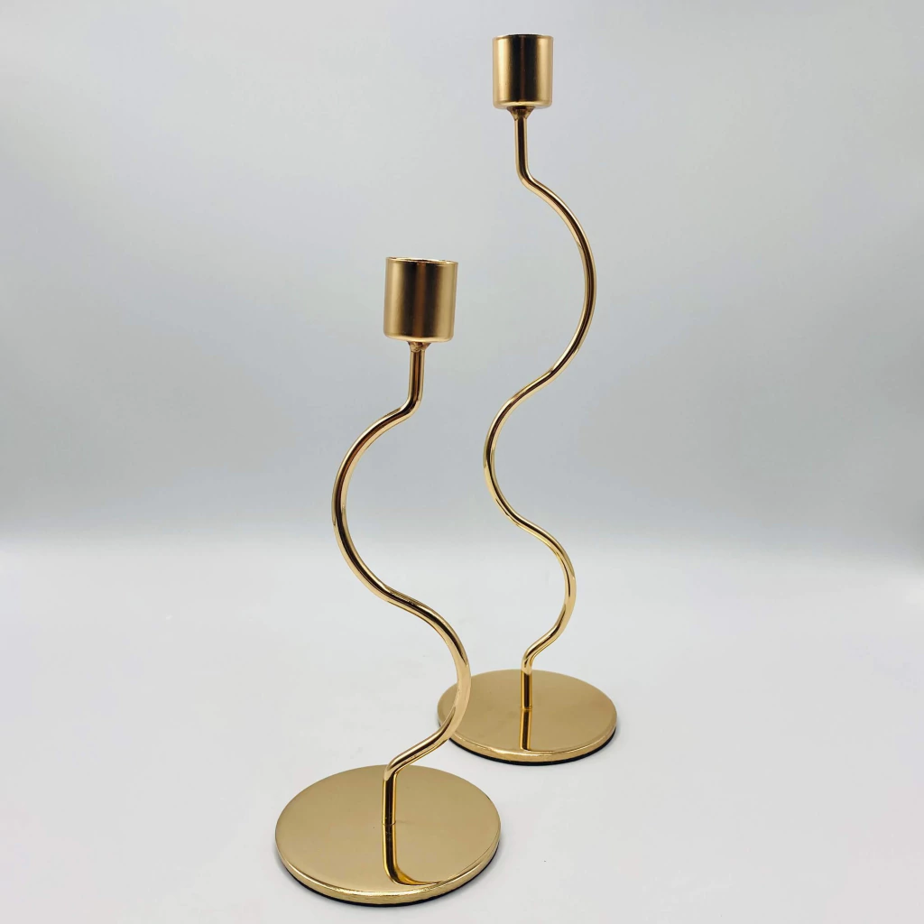 Ilumine com sofisticação com o Kit com 2 castiçais em metal dourado. Design minimalista e em ondas que realça a beleza da luz de velas. Um toque moderno e elegante para seu ambiente.