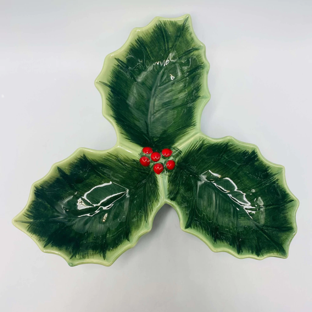 Charmosa e temática, esta petisqueira em formato de folhas de azevinho é perfeita para compor a mesa de Natal com elegância e alegria.
